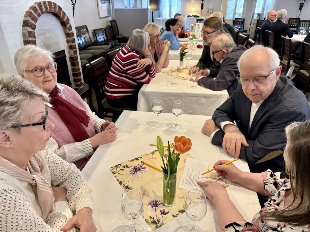 Iloinen iltapäivä 10.4. Villa Tallbo Juhlatalossa